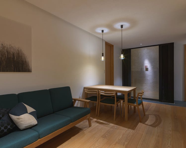 This first-floor unit is one of four apartments in the townhouse. Designed to be your home base in Kyoto whether your stay lasts for a few days or a few months, all units come with wi-fi, heated flooring, a fully-equipped kitchenette, and a washing machine and dryer.